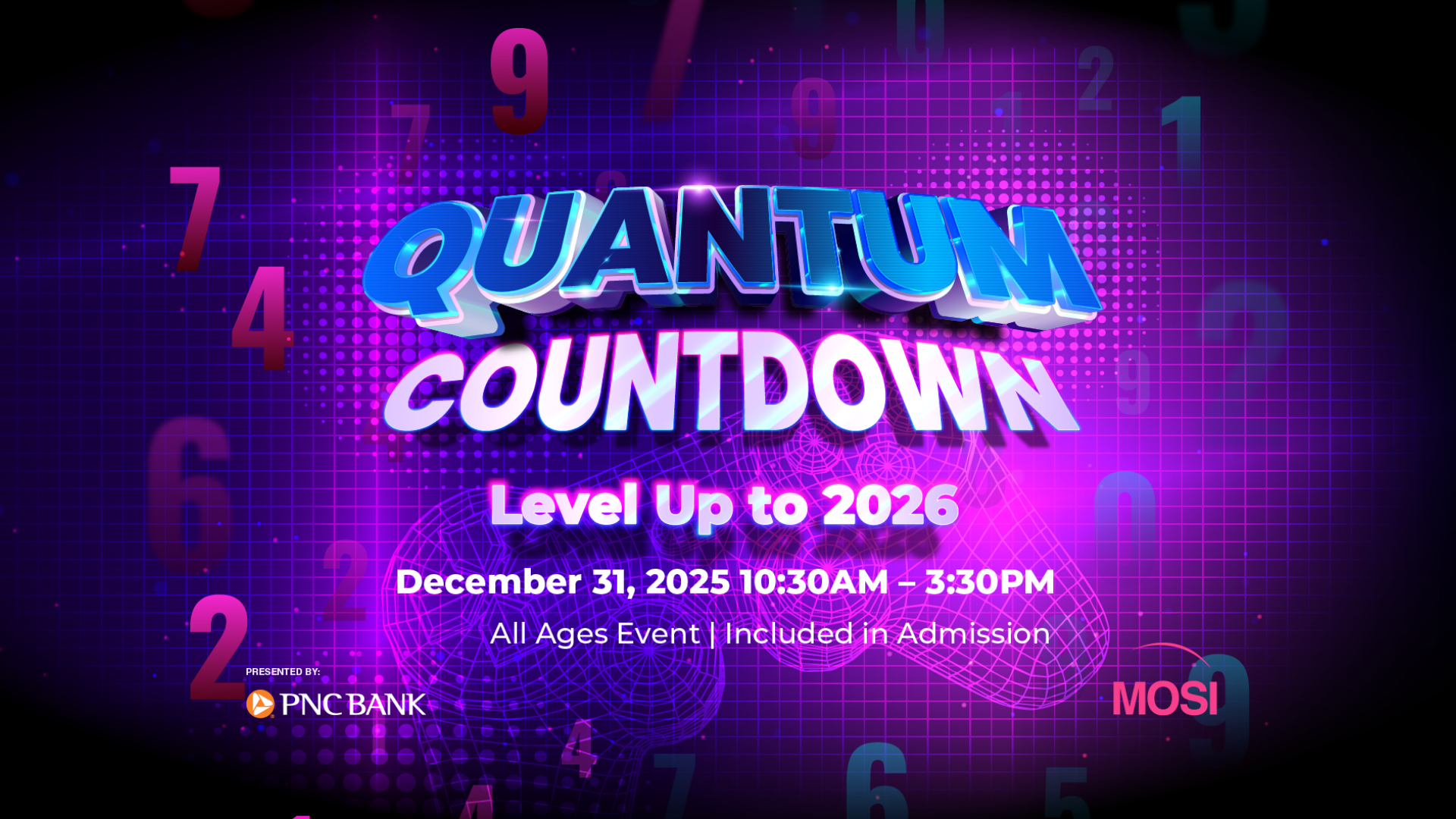 Get ready to press start on New Year’s Eve. Quantum Countdown: Level Up to 2026, presented by PNC, is a family-friendly celebration designed for connection, play, and imagination. Step into a video game–inspired world of science and discovery. Then, explore hands-on activities that encourage you to learn, build, and share together. Even better, this event is FREE for MOSI Members or included in general admission for non-members! (select experiences may require an additional cost).
